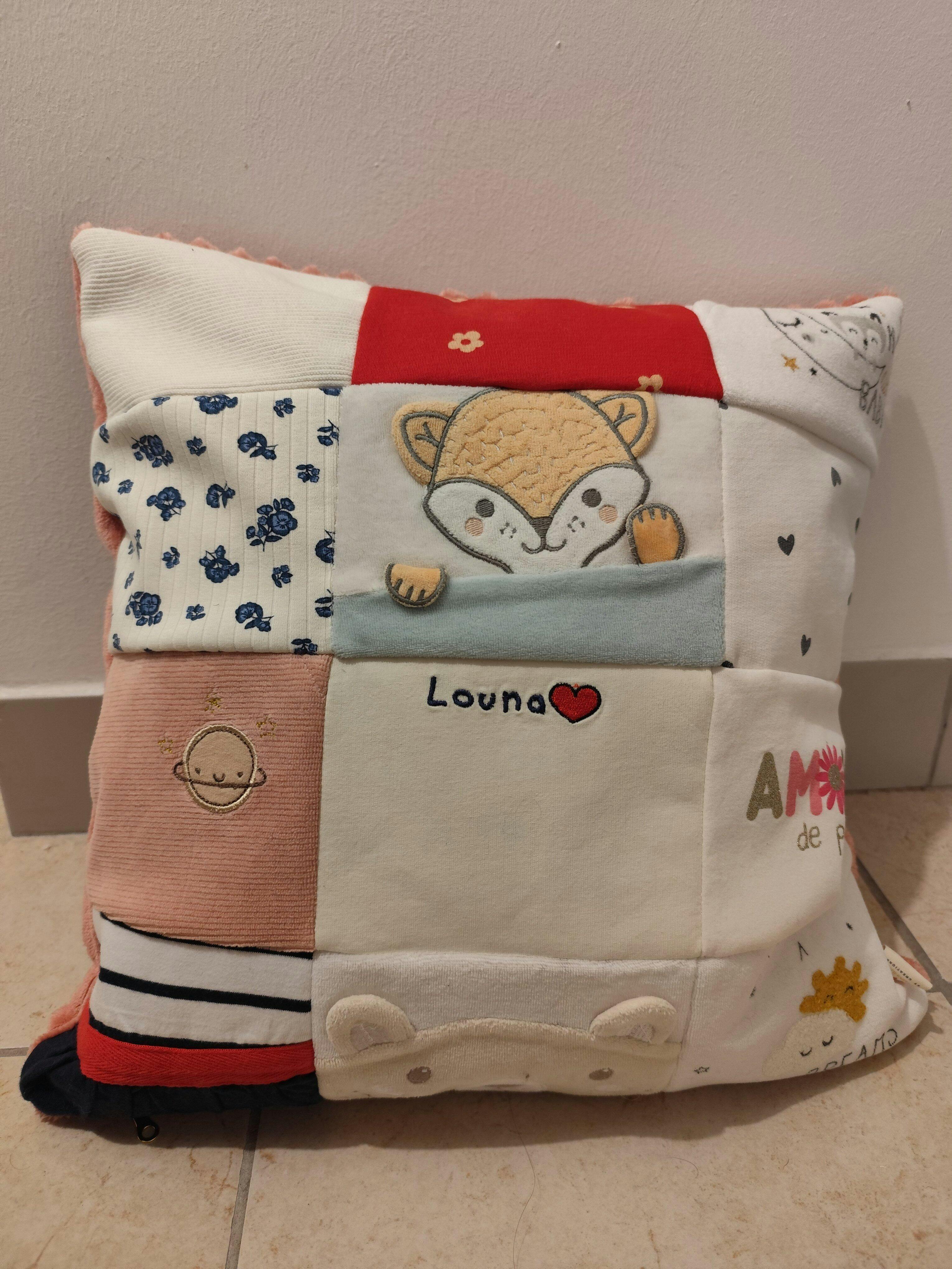 Nous avons trouvé ce coussin absolument magnifique. L’idée d’y intégrer les vêtements de notre bébé est juste merveilleuse et très émouvante. Le rendu est superbe, les finitions sont soignées et le tissu est de grande qualité. C’est un souvenir précieux, rempli d’amour et de tendresse, que nous garderons toute notre vie. Un travail fait avec beaucoup de goût et de délicatesse. Nous recommandons sans hésiter 💛