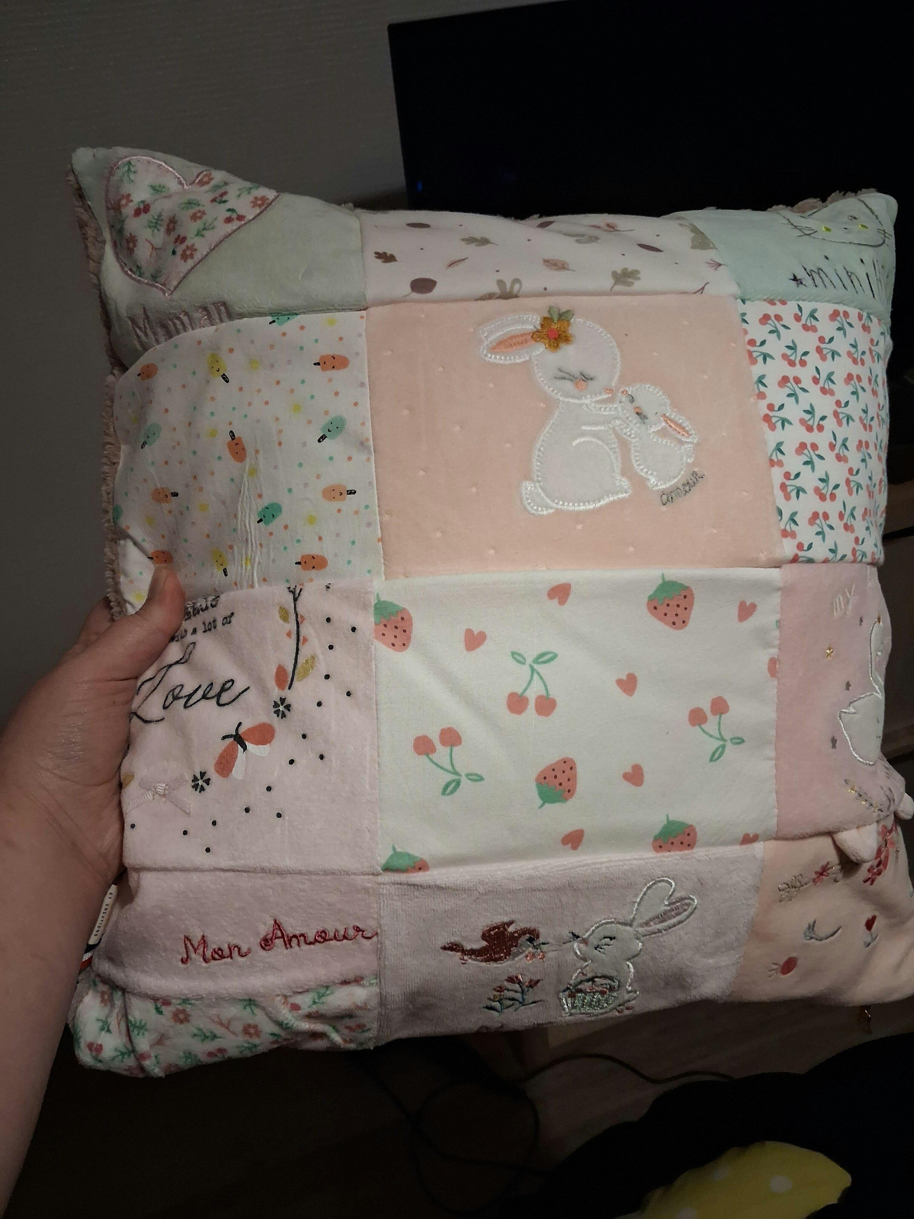 Chaque coussin est fabriqué à la main avec amour dans mon atelier. Il est unique, comme l’histoire de votre enfant.