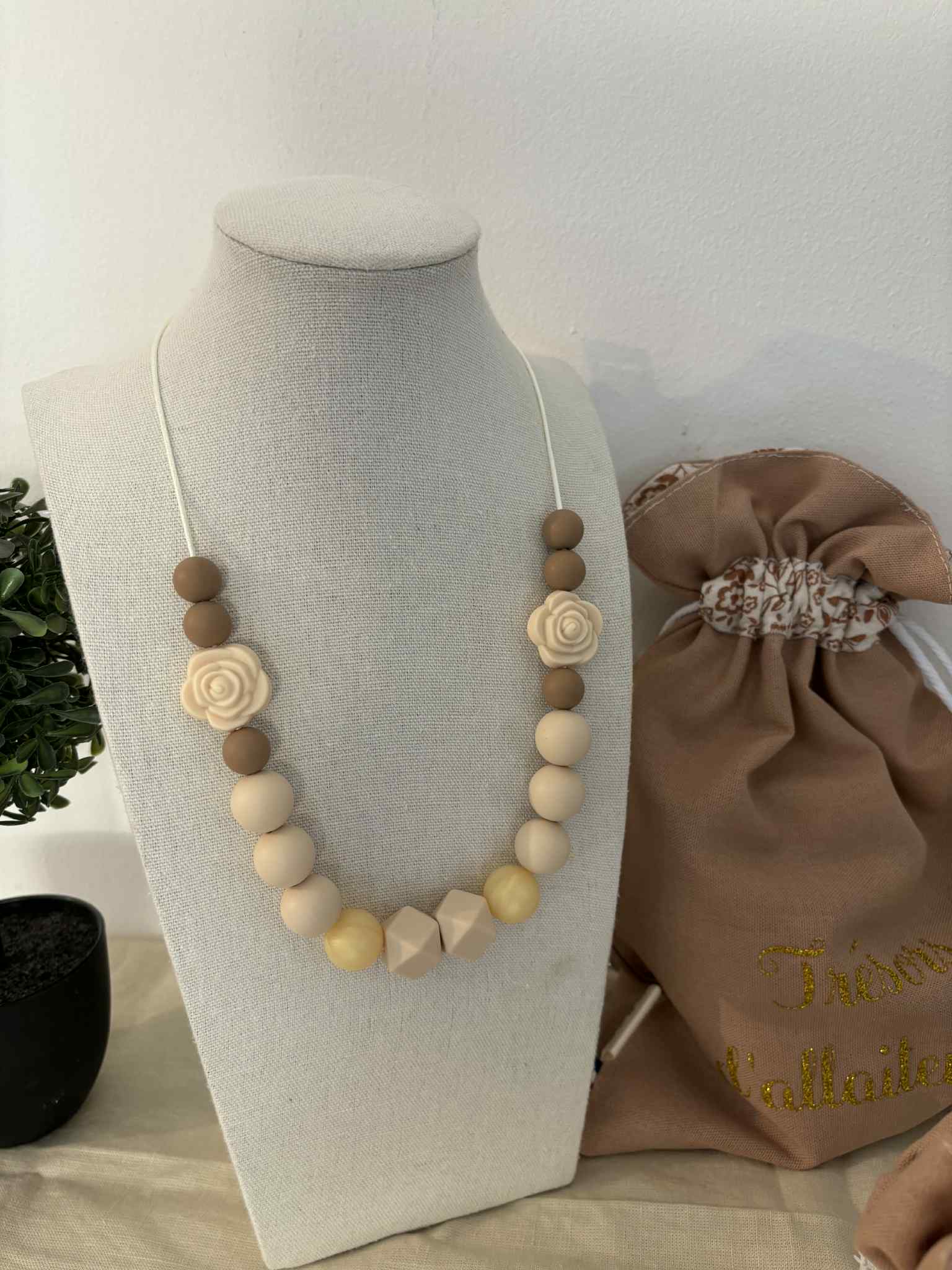 - 1 collier d’allaitement : un bijou pensé pour occuper les petites mains de bébé pendant la tétée ou le portage, tout en restant joli et confortable pour maman.