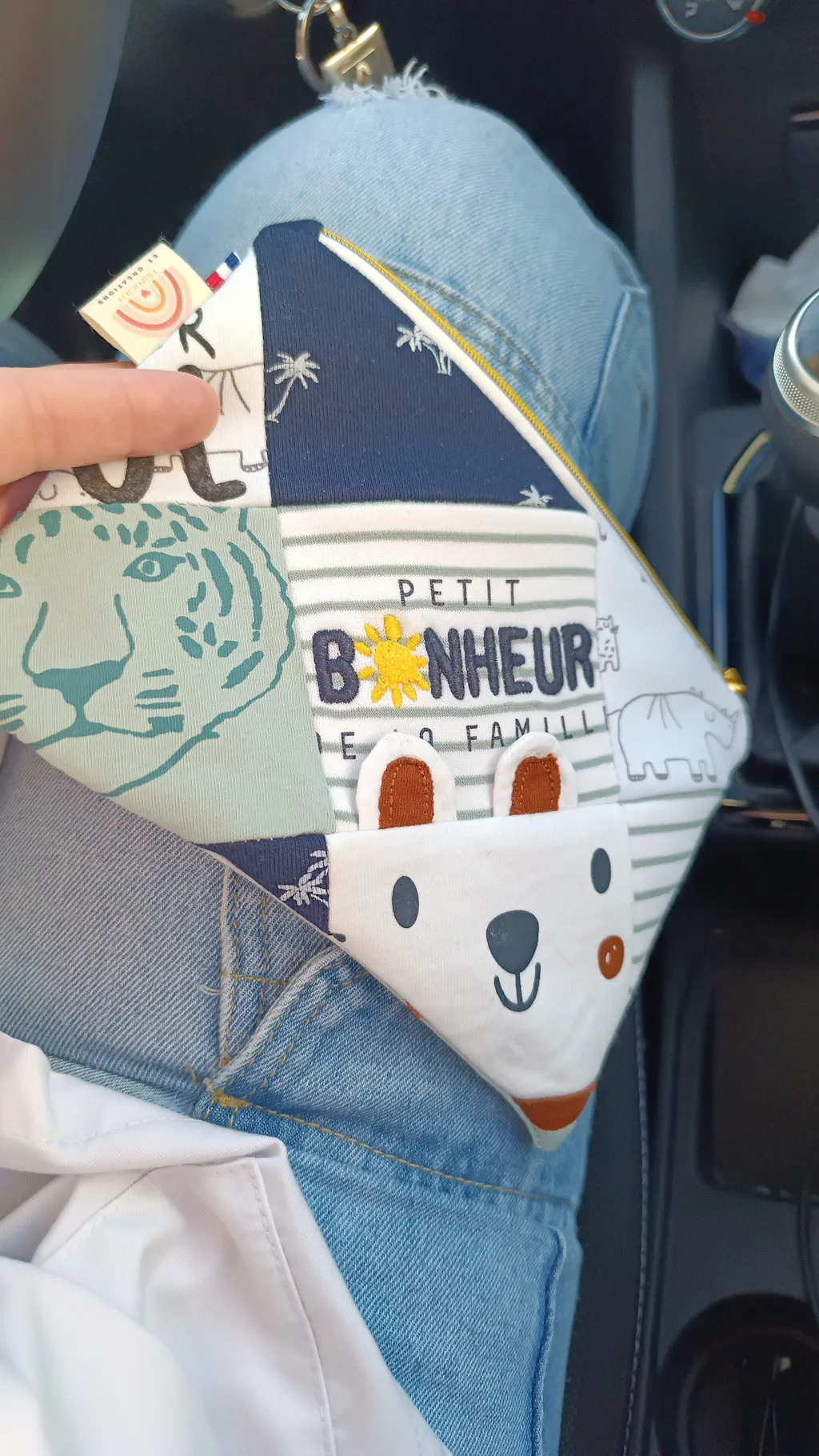 Les deux pochettes réalisées à partir des vêtements de mon bébé sont magnifiques ! Travail très soigné ! Merci